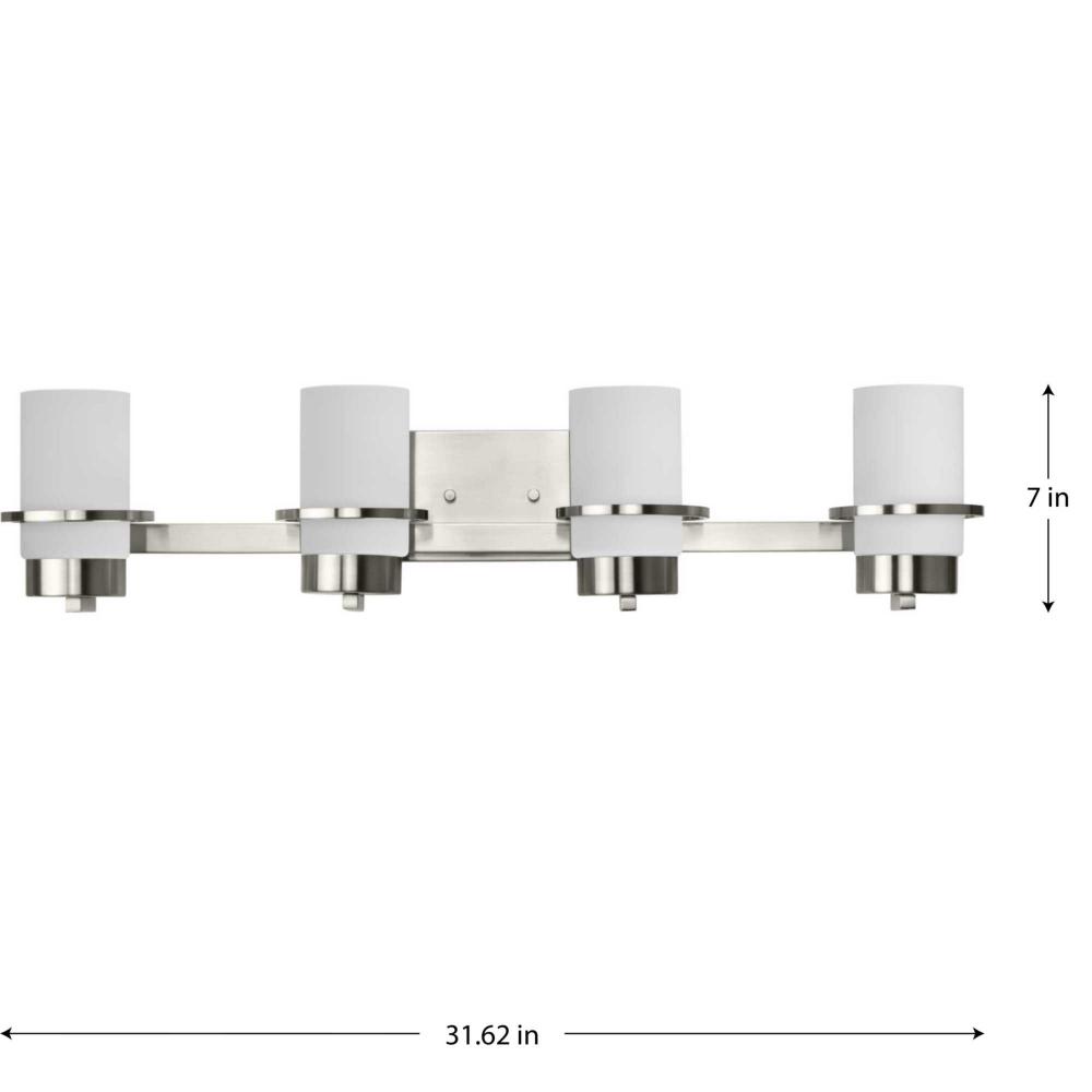 The light is finished in subtle brushed nickel, accenting the light's polished design