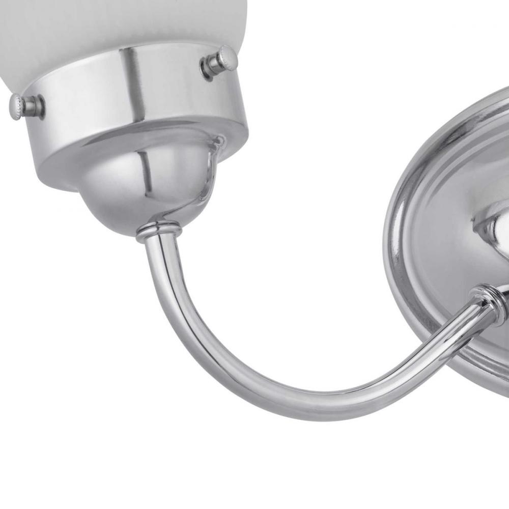 Ideal for a bathroom and powder room.;Perfect for traditional style settings;Crisp polished chrome finish;Elegant etched fluted glass shades;Mount the light fixture facing up or down;Use 2 medium base bulbs that are sold separately (100 W max - LED/CFL/inc