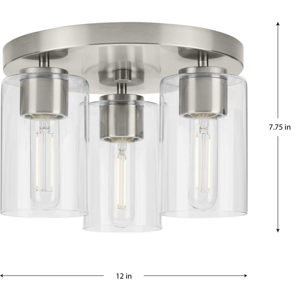 The Cofield Flush Mount features a slender, clean design that showcases understated elegance. A simple round canopy suspends cylindrical glass shades, providing contemporary style to mid-century modern and transitional settings, delivering ambient illumination to hallways, foyers, bedrooms and laundry rooms.
