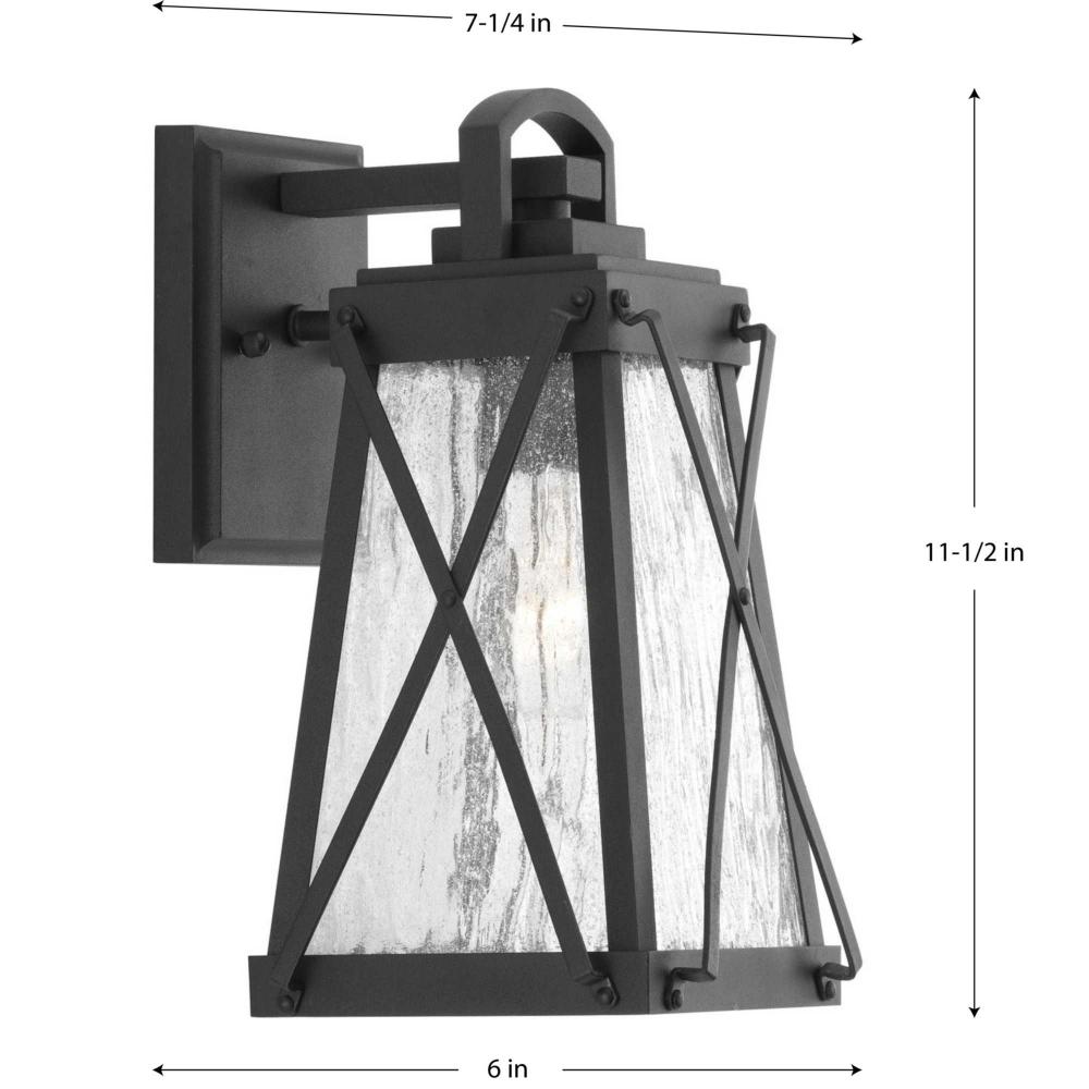 A cottage-inspired outdoor small wall lantern with a tapered cage. Creighton features clear water glass clear and Black finish. The frame's linear details are riveted to enhance mechanical detailing of the fixture. Wall, post and hanging lantern options available. Black finish.