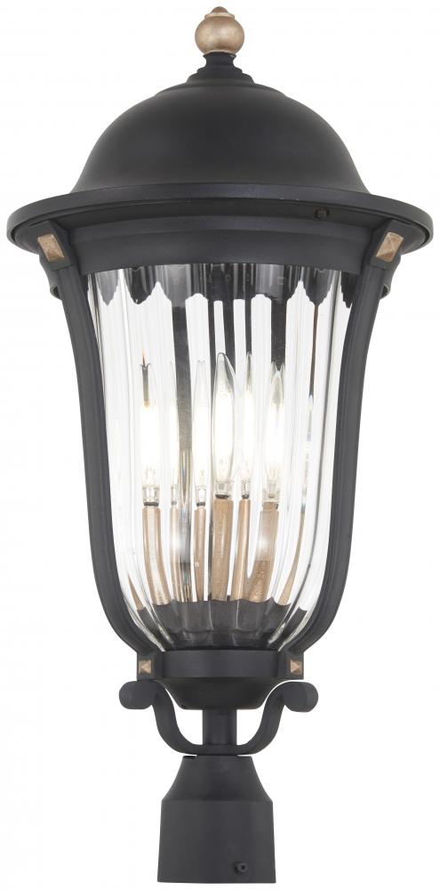 4 Light Post Mount in Sand Coal and Vermeil Gold with Clear Ribbed Glass