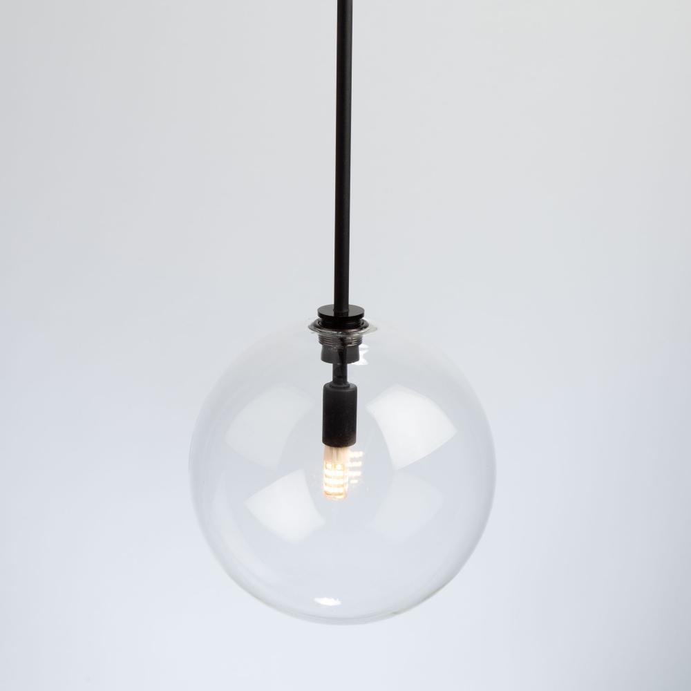 From designer Steven Sabados of S&C, the Pinpoint collection hits that 'simple is more' trend. This series features floating clear glass sphere, textile wiring coverings, and is finished in a rich black. Sometimes simple is more!