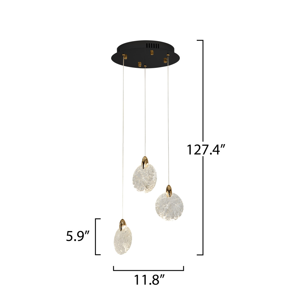 The Snowflake chandelier is a masterpiece of elegance, featuring rock-style cut glassware that glistens like frosted crystals, illuminated by energy-efficient LED lighting. Delicate brass holders cradle each glass piece, all suspended from a matte black canopy that adds a dramatic contrast. Its thoughtful design includes a 3CCT switch, allowing you to choose between warm, neutral, or cool color temperatures (3K, 4K, 6K), and the dimmable functionality lets you tailor the ambiance to perfection. The easily adjustable wires ensure a seamless fit for any ceiling height, making this chandelier as versatile as it is enchanting.