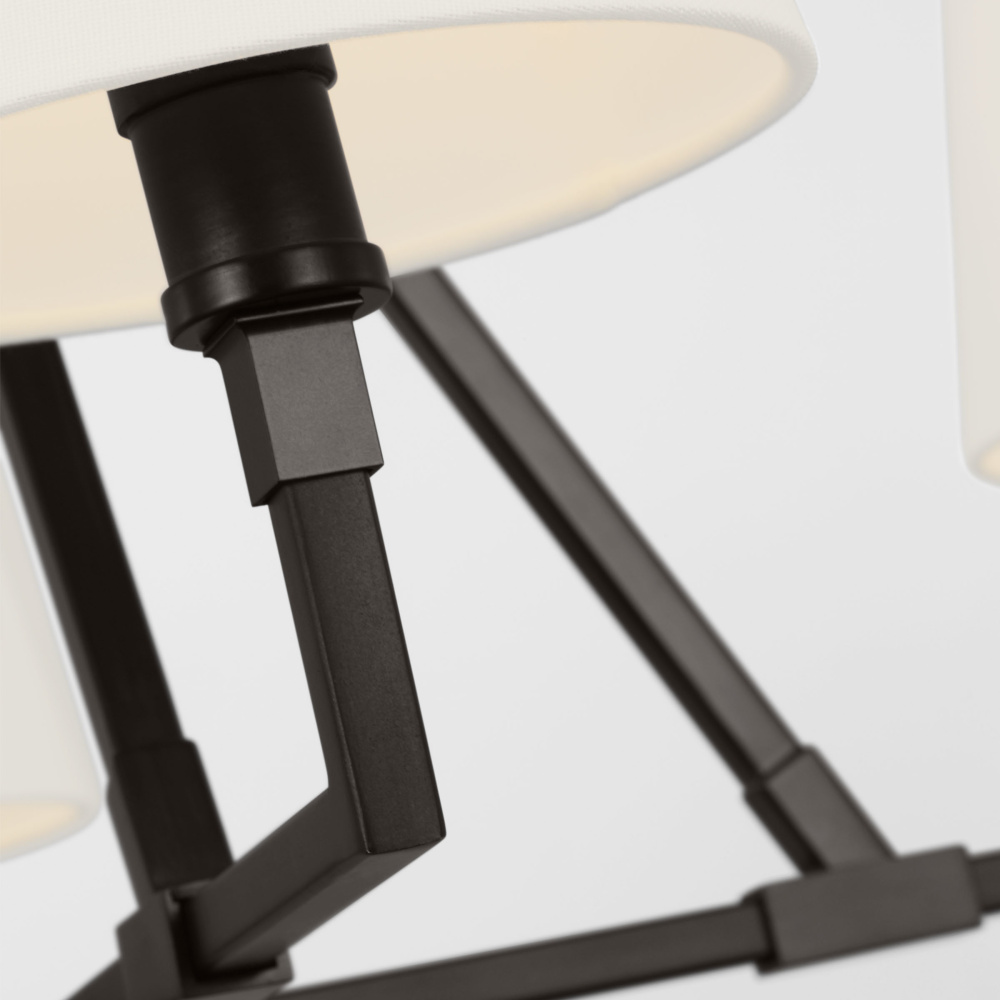 The Perth Collection is a modern and angular take on a traditional trestle form - often seen in furniture and bridges. The arms of the chandeliers are suspended from a triangular frame which both adds strength and a distinctive overall profile. Each item is made from square tubing accented with bracket details where the arms and supports intersect.