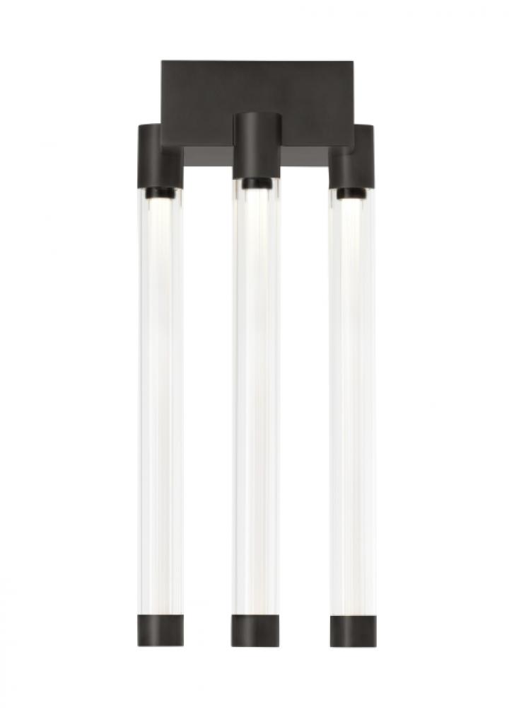 The Phobos Short Flush Mount by Kelly Wearstler for Visual Comfort Modern exceptionally contemplates clean intersecting forms and the purity of tubular light in a modern dialogue of geometries. Radial and rectilinear landscapes create a sculptural world for customized LED lamping that features a central light-guide channeling for a fully diffused glow.