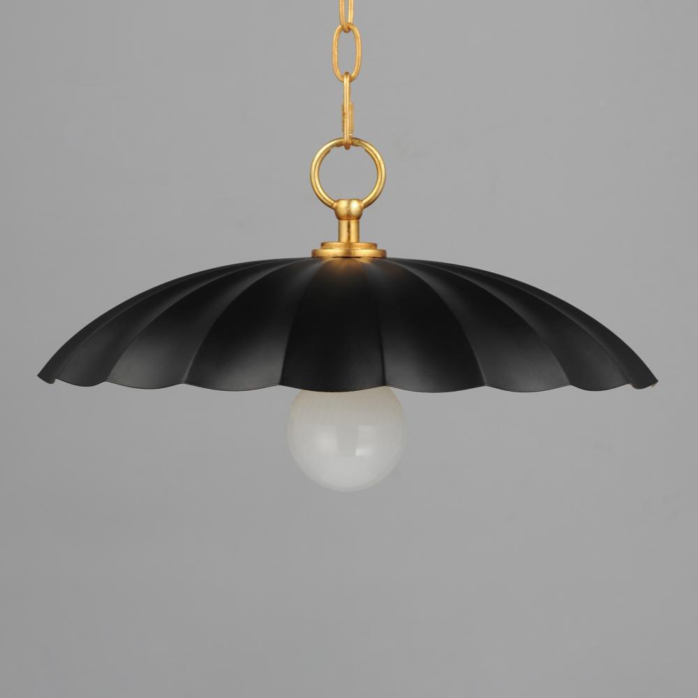 This refreshing collection features the nostalgic detailing of scalloped metal shades with gold leaf interiors. The hand applied gold-leaf interiors reflect the light source within the shades casting a warmer glow downwards. The collection is offered in ch