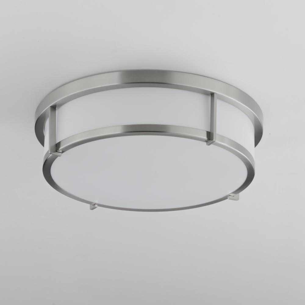 A steel framed acrylic shade transitional flush mount available in a variety of finishes and sizes. Featuring easy accessibility to the shade after installation, the locking mechanism that shade's frame rests on top of making removal quick for keeping