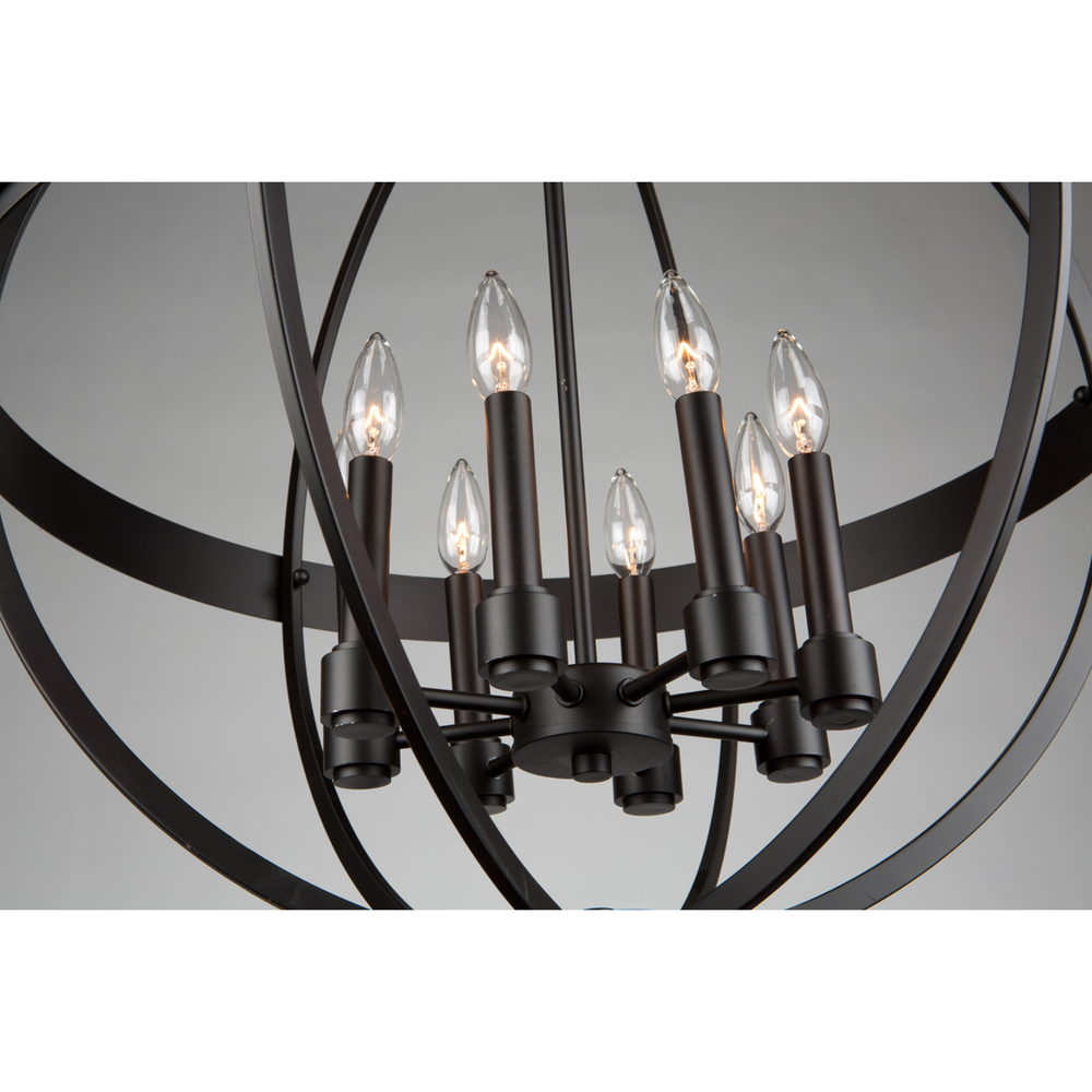 Finished in a brilliant bronze, this 8 light orb from the "Roxbury" collection, designed by the "Lighting Pulse" would help compliment any surrounding. This series comes in both chrome or bronze. Smaller size available as well.