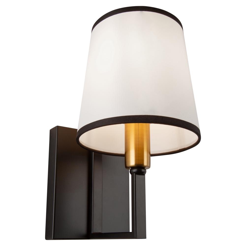 From the S&C design firm, with strict direction from Steven Sabados, the Coco Collection sconce features a transitional frame which has flat type arms. The frame is finished in a rich matte black, and has harvest brass accents. The hardback white linen shades are complimented with upper and lower black trims to finish off the design. Make a statement in your home.