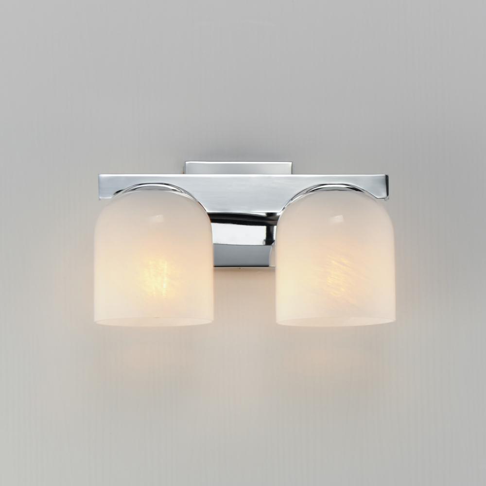 Cut-out metalwork curves around modern bell-shaped glass shades. The series includes pendants and bath vanities available in either Clear or a swirling Marble glass. Available in various complementary finishes: Polished Chrome, Matte Black, or Natural Aged