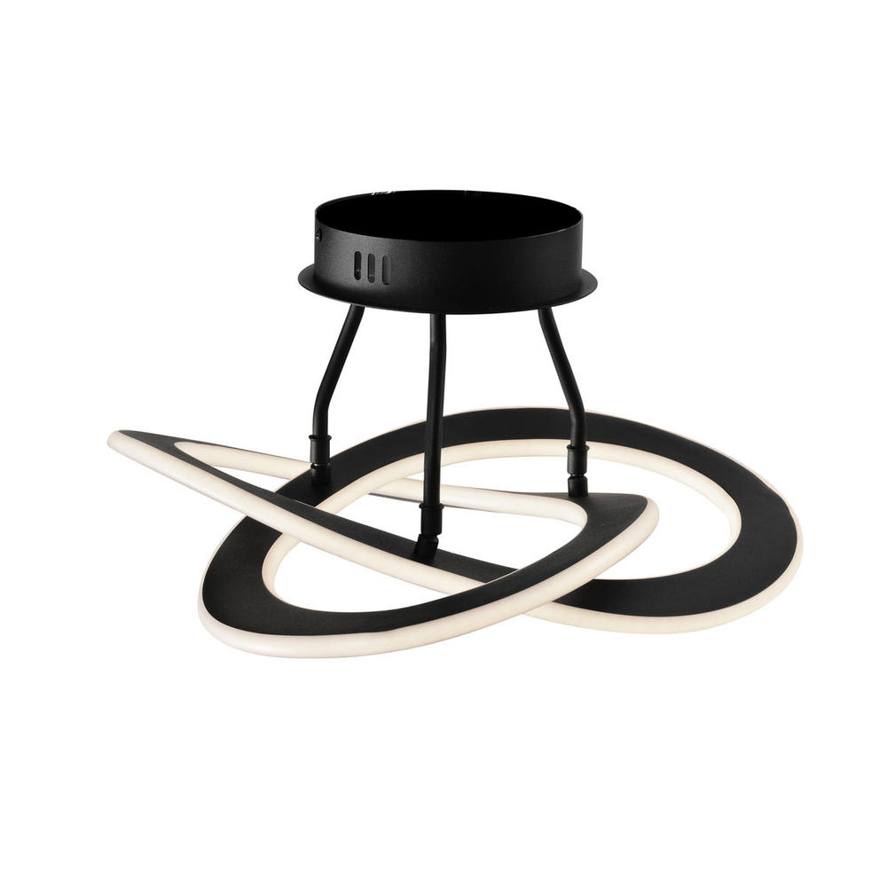 The "Wave Collection" is named after its curvy organic design. A perfect addition to any modern to transitional setting. The chandelier is finished in a semi gloss black and is suspended by aircraft type cables. It is illuminated by bright energy saving LED technology. This semi flush has two sizes of matching chandeliers.