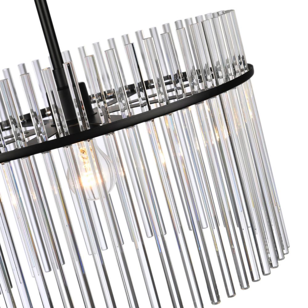 The Ava Collection pendant captivates with its refined allure, featuring glimmering circular glass rods gracefully suspended on a sleek black frame. Its versatile design allows it to shine as either a pendant or a semi-flushmount fixture, adapting effortlessly to your space. With its modern yet romantic aesthetic, it casts a soft, enchanting glow, elevating any room it adorns.