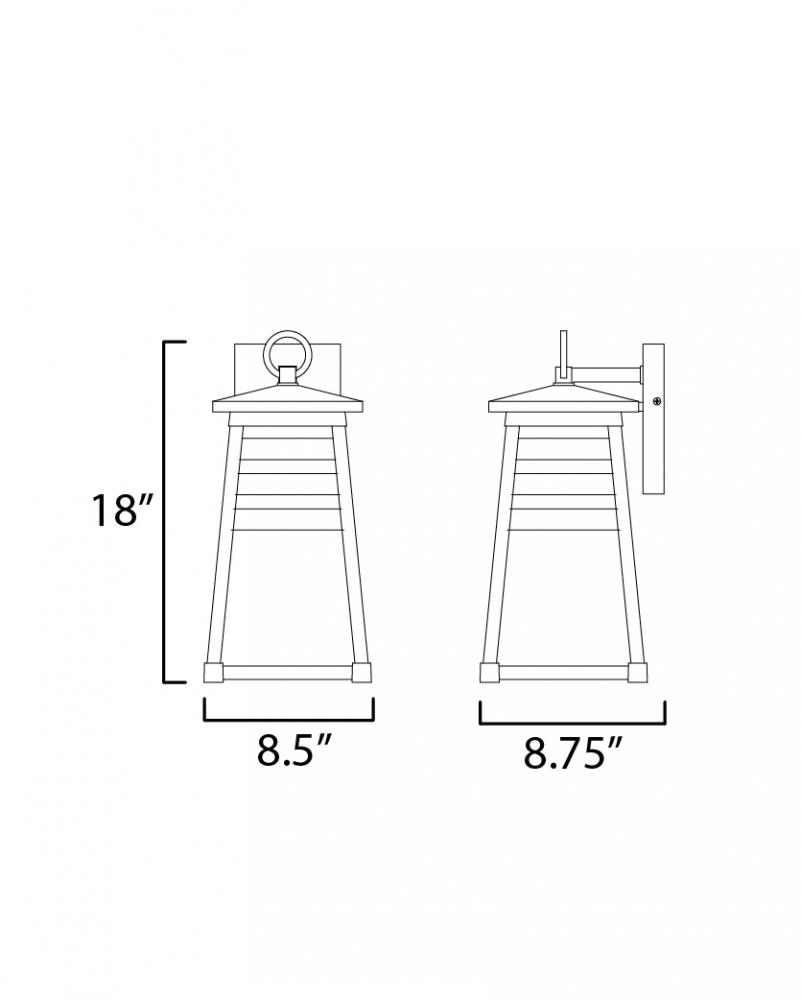 Contrasting louvered insets are set within Matte Black trapezoidal frames. The frames are made of Vivex so their finish will withstand harsher climates. The louvered panel insets are made of aluminum and feature a full cut-off design aesthetic making this