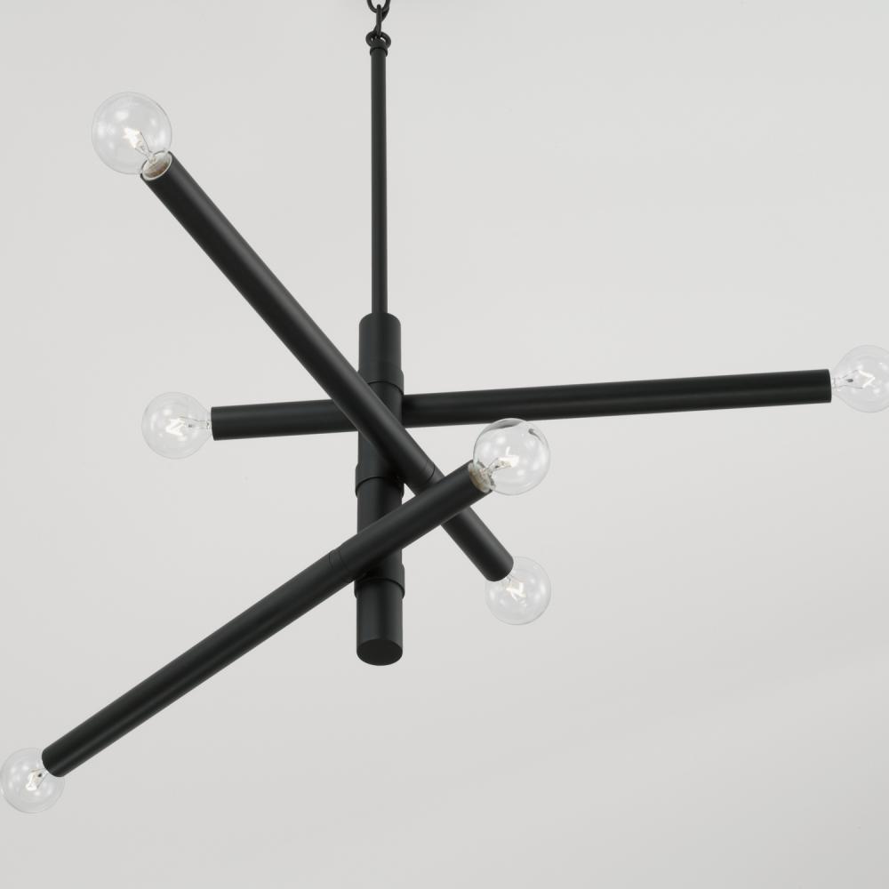 Defined by sleek lines and a modern form, the Zane Small Chandelier brings sophisticated sputnik style to any space. The neutral tone of the Matte Black finish punctuates this minimalist luminaire.