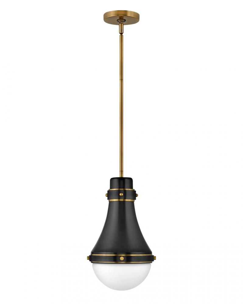 Oliver features an eye-catching sleek spun metal shade and etched opal glass shade beneath. Sleek metal bands and knobs add interest and reinforce its modern-meets-traditional style. Oliver is available in a robust lineup of finish combinations.