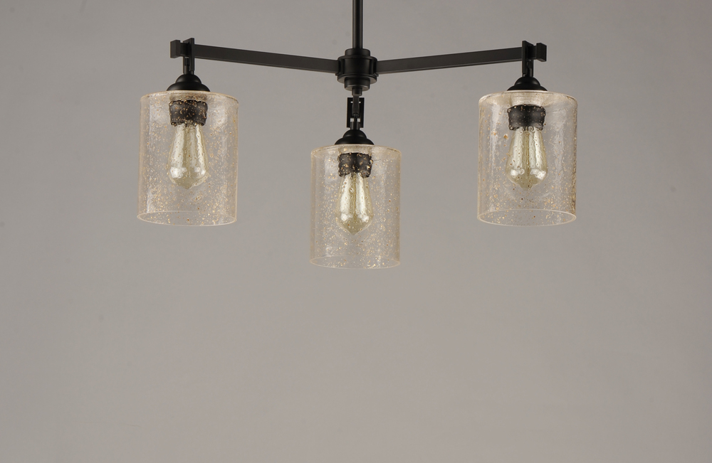Stone Seeded glass shades with flecks of gold, suspend from a squared loop that cradles a rectangular tube arm finished in a soft Bronze. The minimalistic frame is a perfect complement to the rustic glamour of this glass.