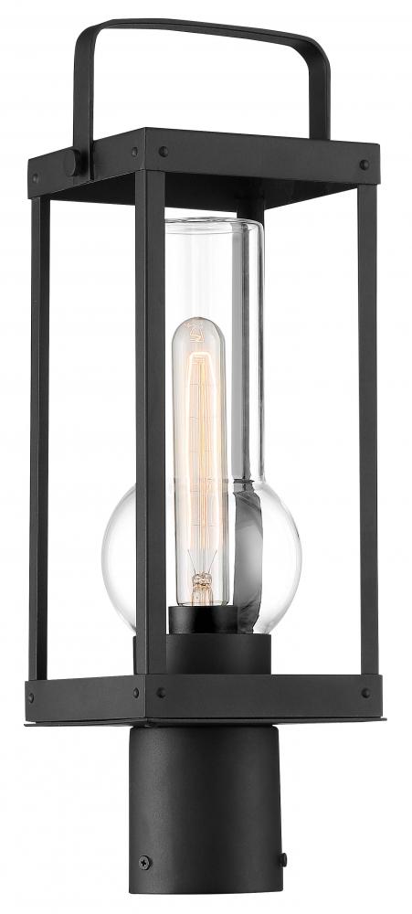 1 Light Post Mount in Sand Coal Finish with Clear Glass Shade