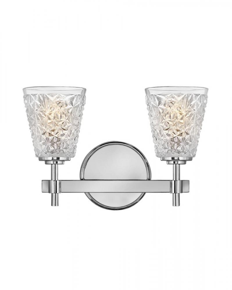 Glam meets tradition in the unique Amabelle. It features an organic faceted clear glass pattern. The Chrome finish backplate and bar seamlessly complement the crystal pattern of the glass.