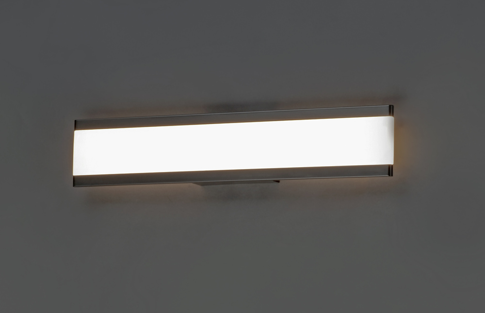 Dual Black aluminum channels support a Frost acrylic diffuser that projects light into the room when illuminated. Available in 4 lengths, this collection can be installed horizontal above the mirror or vertical on each side.