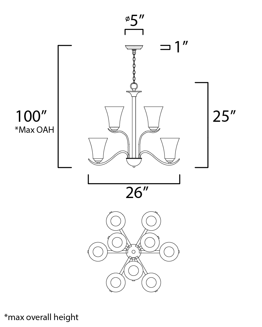 Gently waving arms of Satin Nickel or Oil Rubbed Bronze support tall-profile Frosted glass shades creating a scale normally not found in this category of lighting. The bath vanity may be installed up or down and also includes a Polished Chrome finish.