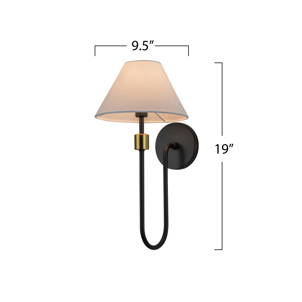 The Providence collection wall sconce designed by Lighting Pulse is a harmonious blend of timeless grace and contemporary refinement. Its hardback linen fabric shade softly diffuses light, casting a gentle glow that evokes a sense of serenity. The bold black frame, accentuated with a warm brass detail, adds a touch of refined charm, making it a perfect addition to any space yearning for understated luxury.