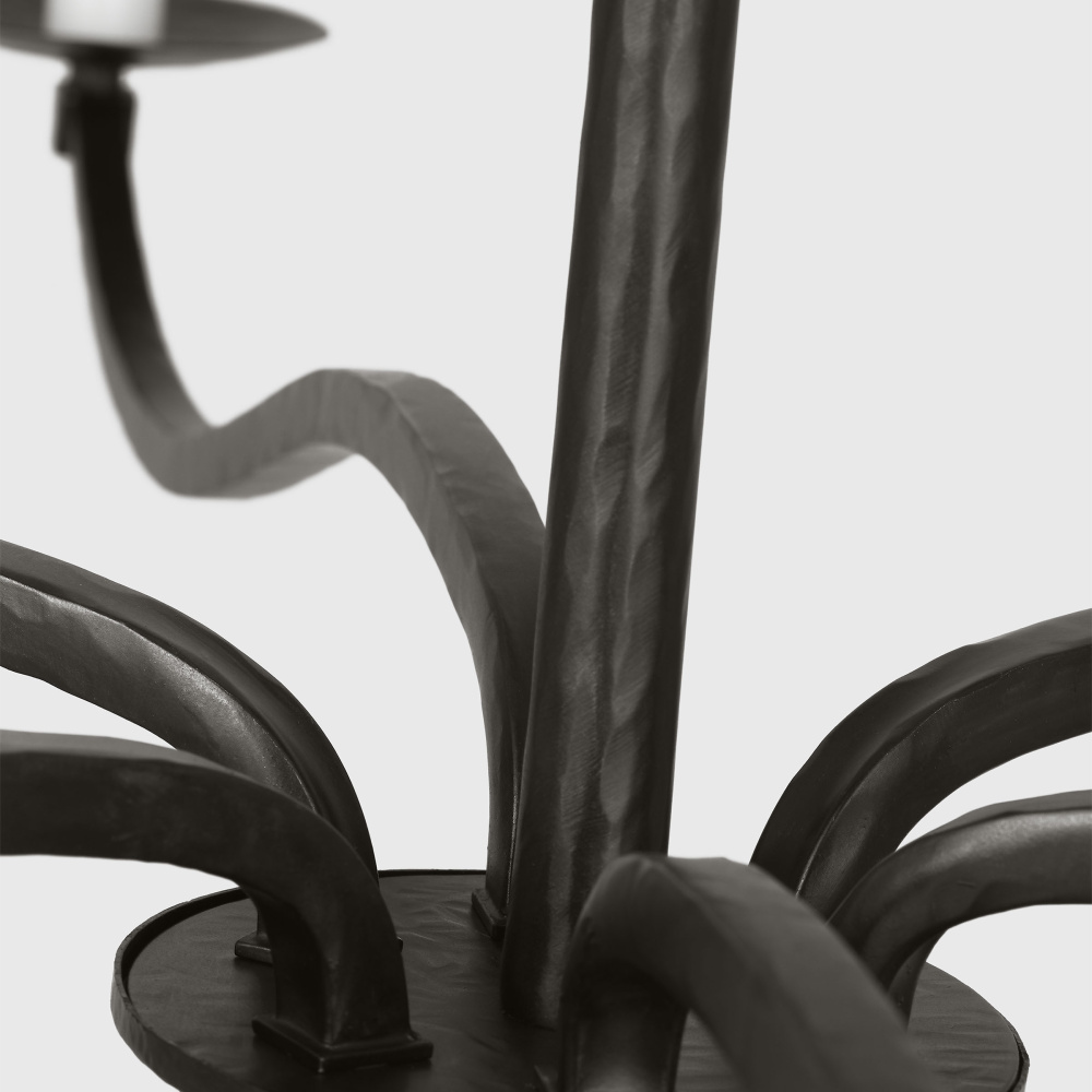 The Wellen series by Chapman & Myers beautifully merges the artistry of traditional blacksmith techniques with modern design sensibilities. Constructed from square iron tubes, the chandelier’s gracefully curved arms evoke a sense of refined craftsmanship. Intricate details such as the top loop, brackets, and candle cups further enhance its timeless aesthetic. The Wellen chandelier's classic silhouette is perfect for adding a touch of elegance and sophistication to traditional, vintage-inspired, and transitional interiors. Ideal for dining rooms, living spaces, or entryways, this piece transforms any room into a warm and inviting space with its understated yet striking design.