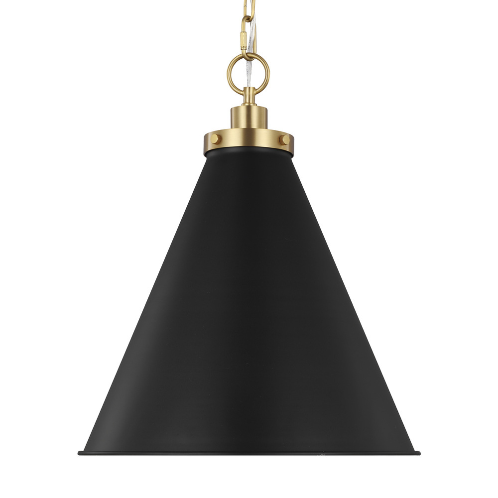 Inspired by various classic utility silhouettes - from factory lighting to barn sconces - capped by contrasting metal hardware. Each shade of the Wellfleet series by Chapman & Myers is available multiple sizes of 3 versatile profiles; either a flat farm dome, a traditional factory dome, or tapered cone. The shades are available with either a black or white finish and are paired with either a burnished brass or polished nickel collar, chain and canopy.
