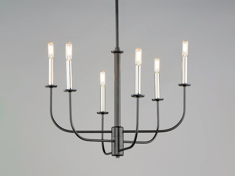 Arms sweep upward from an adjustable collector to create a minimal yet stately design. Available in Black, Satin Brass, and Satin Nickel, this collection provides a transitional look for a variety of settings.