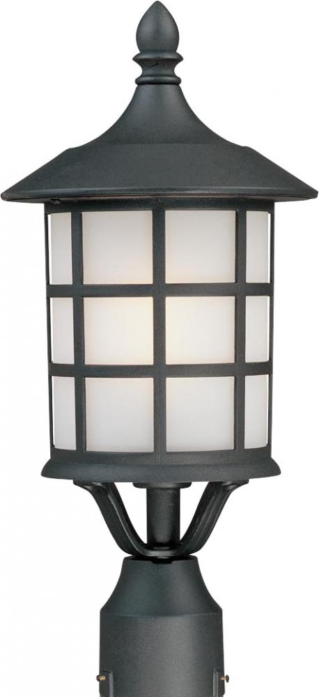 Single head post featuring a fashionable black finish and complimentary white seeded glassware