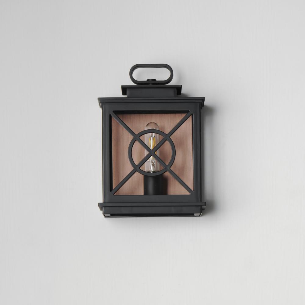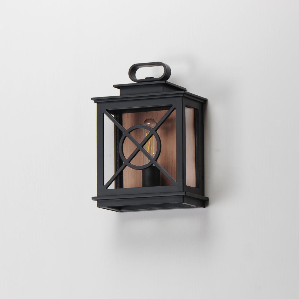 Styled as a classic early American coach lantern, the Yorktown sconces offer an established exterior design aesthetic with the modern engineering to withstand the harshest climates. A crossing pattern of the material wraps clear glass panes that protects t